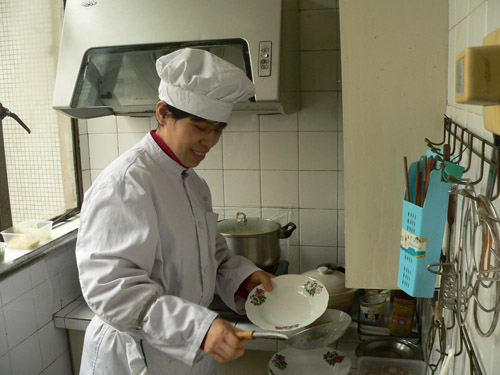 图为食堂高师傅放弃寒假休息上门为老同志服务