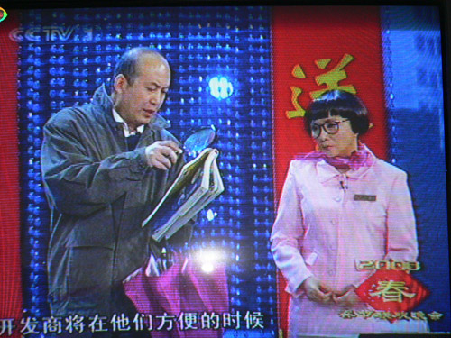 图为郭达与蔡明等主演的小品《梦幻家园》(摄自电视画面)