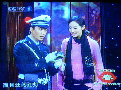 图为韩雪等主演的小品《街头卫士》(摄自电视画面)