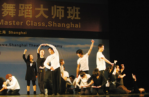 为期10天的首届上海国际舞蹈大师班,前天在上戏莲花路校区剧场落幕,一台大规模汇报献演同时举行。来自15个省市自治区和澳门特别行政区以及澳大利亚的132名学员,接受了来自美国舞蹈节的5位资深舞蹈教师和编导的10门、60小时课程,范围覆盖现代舞技术技巧、即兴和编舞等。作为上海首个国际性的舞蹈国际教育品牌,该大师班以个性化施教以及公开选课,为学员打开世界舞蹈创演潮流的一扇窗户。闭幕式上,所有学员以5个编组样式献演,既有集体集训动作的亮相,也有新编现代舞作品的首演。 ・伍斌 金昊 摄影报道・ (原载《解放日报》2008年2月26日第11版:文化娱乐新闻)
