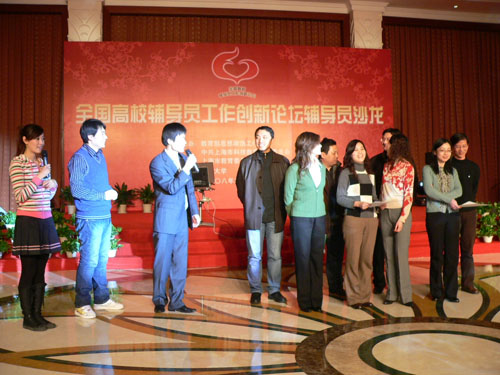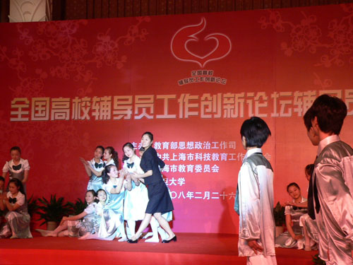 昨天(2月26日)晚上,我校部分师生在党委宣传部部长张生泉带领下,在教育部思想政治工作司、上海市科教党委和复旦大学联合举行的“全国辅导员工作创新论坛辅导员沙龙”上为与会代表作精彩表演。教育部思想政治工作司司长杨振斌,上海市人民政府副秘书长、市科教党委副书记翁铁慧,复旦大学党委副书记陈立民等领导出席晚会并对我校师生的精彩表演给予充分肯定。