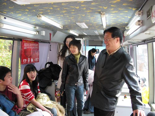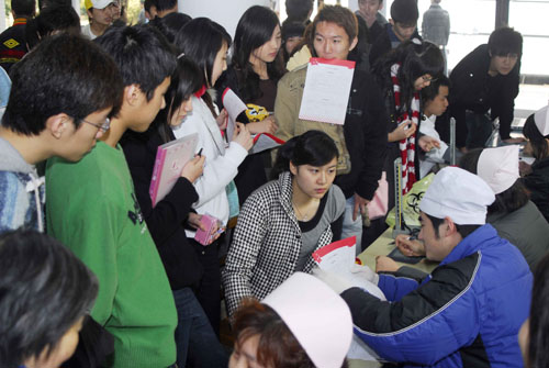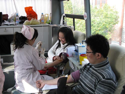 3月10日上午,开云足球首页官网下载华山路校区的校园里,阳光灿烂春意盎然,涌动着爱的暖流,本学期学生无偿献血正在这里愉快地进行着,场面令人感动。整个活动从填写献血表格到验血、采血的全过程都排起了长长的队伍。新空间里人头攒动,同学们无不一脸兴奋与激动。其中有的同学笑对医生验血的针头,有的因为自己的身体原因不能参加无偿鲜血而满脸的惋惜。当记者问及同学们献血的动机时,几乎所有的同学都认为帮助别人是自己最大的心愿。其中还有一些初次参加无偿献血的同学的单纯动机也令人难忘,有的是希望知道自己是什么血型,有的是希望自己能弥补没有参加过无偿献血的遗憾,也有的认为自己献血在帮助别人的同时也帮助了自己,就像往银行里储蓄一样,在储蓄爱心的同时,如果有一天自己和家人需要别人帮助的时候也能享受自己爱心带来的温暖。虽然本次血液中心出动了两台采血车,但是无论车上还是车下到处都是上戏学子排队等待奉献爱心的身影。一些感人细节和画面深深印在我们脑海里。当天恰逢我校招生考试的日子,许多考生和家长也都目睹了我校学子踊跃参加无偿献血的动人情景,其中一名学生家长默默登上鲜血车,奉献爱心;一些没来得及报名的同学一直等在填表处,争取献血名额,其中不乏四年级的毕业生,他们表示不是为了休假、不是为了营养品,而是一个心愿,可以用自己的绵薄之力奉献爱心,体现价值;休息室里志愿者们忙里忙外,照顾每一个献血同学,用甜美的微笑融化了献血者的紧张,一句温暖的问候消除他们的疼痛。