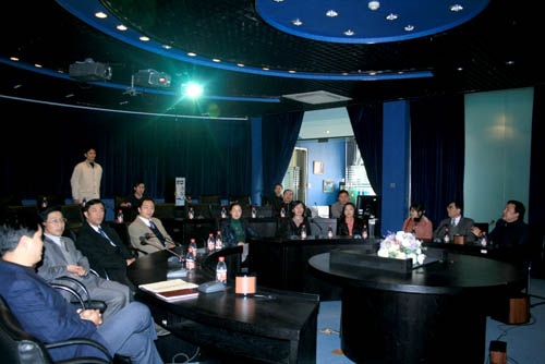 上午会议结束后,检查小组一行马不停蹄,检查了我校教学设施及校容校貌,并在虚拟实验室听取了虚拟排演的有关介绍。