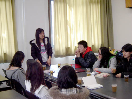 创意学院读书会的宋丙雪在讨论活动中介绍说:“我们的活动不注重形式,可能会比较轻松、随意。但每人必须和大家一起讨论一下平时读了些什么书,结合自身的兴趣爱好,互相推荐书目。同时,不同班级的同学也可以借助这样一个交流的机会,加深彼此之间的了解,也是一个互相学习的过程。”
