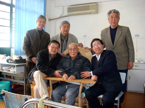 图为相关部门领导代表学校看望陈钟老师(前排中)