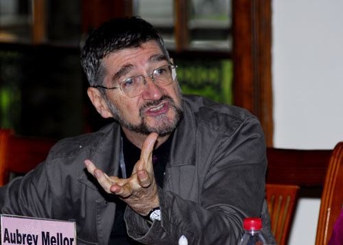 图为与会嘉宾澳大利亚国立戏剧学院院长Aubrey Mellor发言