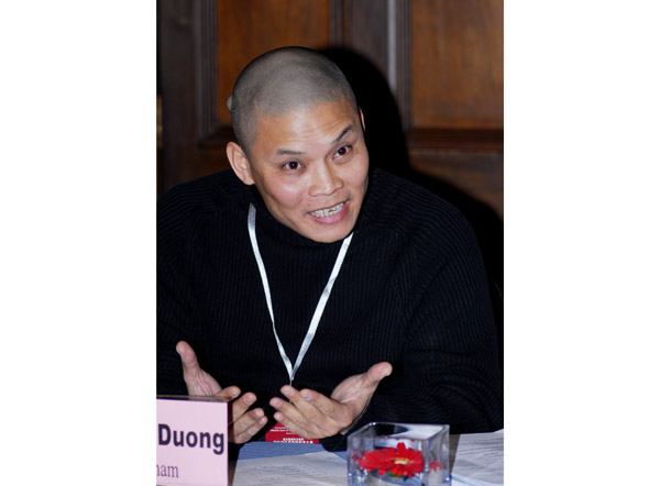 图为与会嘉宾越南表演专业训练与实践工作中心主任Le Quy Duong发言