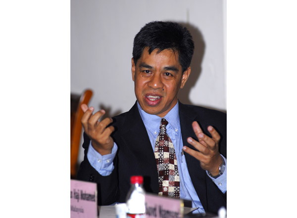 图为与会嘉宾马来西亚科技大学艺术学院表演系主任A.Rahman Haji Mohamed发言