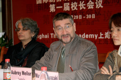 图为副主席澳大利亚国立戏剧学院(悉尼)院长Aubrey Mellor在会上发言