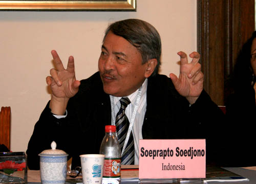 图为副主席印度尼西亚国立艺术学院(热惹)院长Soeprapto Soedjono在会上发言