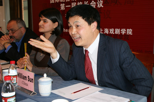 图为联合国教科文组织国际剧协戏剧院校亚太局主任孙惠柱在会上发言