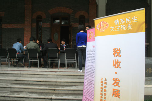 今天中午,上海市静安区国家税务局在我校佛西楼前设立税收宣传点,为我校教职工提供税收咨询服务,进行税收相关知识宣传工作。(文/小河 图/白水 小河 编辑/雨田)