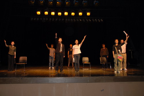 5日的演出,上半场由纳海剧社06级(B)班的同学们出演,大幕一拉开,台下的观众们便眼前一亮:一个个人物形象栩栩如生,张力十足,故事情节扣人心弦,跌荡起伏。下半场轮到了06级(A)班的同学们,他们也不甘示弱,全心投入,以情动人。虽然台下的观众为数不多,但整场演出下来,演员们的精彩表演令台下的每一位老师、同学都为之振奋、感动。演出结束后,党委副书记、副院长
