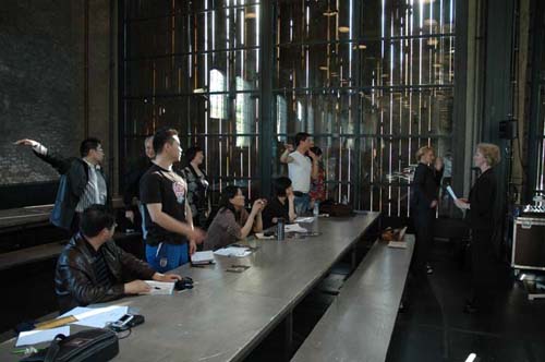 下午,与布莱希特表演学院进行教学交流,观看了他们的表演、台词训练课。之后又与欧洲最具影响的专业刊物《当代戏剧》原主编、《柏林日报》副刊原主编、柏林大学冯•贝克教授座谈,交流了对于德国当代戏剧的看法。