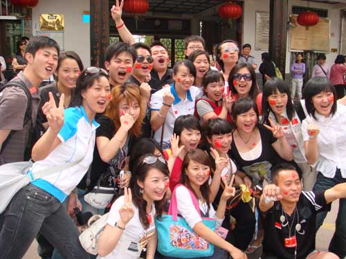 5月14日,戏导专业学生在圆满完成此次赴江西的演出任务之后,来到江南名楼滕王阁参观学习恰逢奥运圣火天使金晶为16日在南昌举行的欢迎圣火传递仪式做宣传。