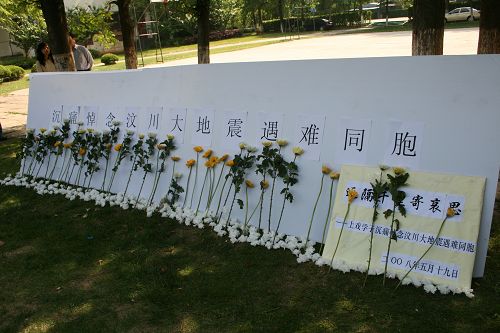 图为莲花路师生用鲜花悼念死难者