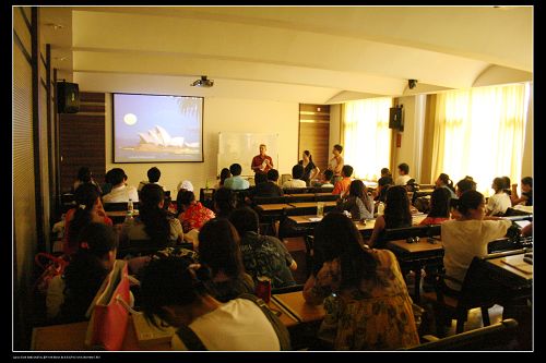 在讲座中,他首先介绍了NIDA的课程设置,其次介绍了NIDA培养设计系学生的理念:第一,培养学生的动手能力,绘画技能是一切设计的基础,只有基础扎实,才可能有好的设计作品,他要求NIDA设计系的学生们每天必须花相当的时间在绘画上;第二,戏剧作品的制作是一个综合性的过程,舞美设计要与其他戏剧部门有效合作,才能制作出相对完美的作品。一个好的舞台美术设计师,除了要及早与导演进行沟通,在进行设计的时候,他同时也是一个编剧、导演、灯光设计师,甚至演员,要在头脑中复现出整个剧作的样貌;第三,培养学生开阔的想象力。如用当代时尚的设计元素去复现莎剧的时代,来营造一种奇特的戏剧氛围;第四,提升学生的自信力。在第二学年,设计系的学生会参与四到五部作品的制作,培养其实践能力,如服装设计专业学生为某出戏制作的服装会在剧作正式公演以前进行展示,由演员亲自着装,感受服装的舒适度,是否符合人物性格,导演和专业人士都会到场,进行评判,提出建议。以上所述的这些综合素质的培养,让NIDA的毕业生们做好充分的准备,使他们信心十足地走向今后的职业生涯。