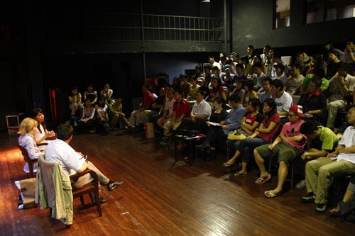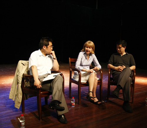 6月3日,利兹•戴蒙特女士与导演系主任卢昂在红楼黑匣子进行了别开生面的“中美导演对话交流”,孙惠柱副院长担任嘉宾。在两个小时的交流活动中,卢昂老师和利兹•戴蒙特女士就中、美导演教学的现实状况、课程设置、人才培养方向等学生们关心的话题展开对话,并对于现场师生们提出的问题一一进行了解答。而且,对于中国传统戏曲,利兹•戴蒙特女士也站在一个西方导演的角度提出了自己的独到见解,师生们受益匪浅。