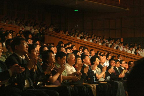 经过半个多月的紧张准备、特别是经过我们开云足球首页官网下载有关师生的热情参与,上海市卫生系统抗震救灾主题活动昨天(17日)晚上在上海大剧院获圆满成功。市领导殷一璀、沈晓明,市科教党委领导和市卫生局领导等出席昨天的活动并且高度肯定我校所做贡献。我校党委副书记、副院长葛朗,主持工作的副院长韩生以及党委宣传部部长张生泉,导演系主任卢昂,电视学院副院长吴洪林等出席活动。出席活动的还有全市医务系统干部和群众、部分高校领导共计1000多人。