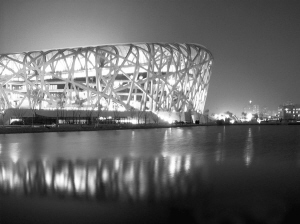 灯光让“鸟巢”晶莹剔透