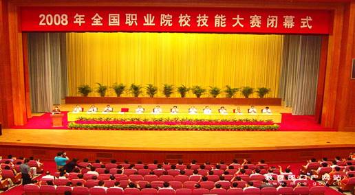 由教育部、天津市人民政府、人力资源和社会保障部、工业和信息化部、住房和城乡建设部等11个部门联合举办的2008年全国职业院校技能大赛近日在天津落下帷幕。上海选派参加大赛的戏曲学校模特班学生潘璐�载誉归来,获得中职组模特表演技能比赛一等奖,为上海和戏校争得了荣誉,显示了上海中职教育突出成绩。全国人大常委会副委员长陈至立、教育部部长周济、天津市市长黄兴国出席大赛闭幕式并为获奖团体和个人颁奖。