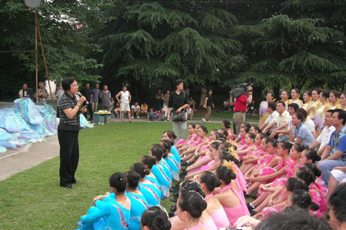 随着奥运会倒计时,“海派秧歌”的排练一天紧似一天,又遇到上海连续高温,每天排练都安排在晚上9点以后,往往持续到凌晨2点。叶老师和学生们克服阵阵困意,以饱满的热情投入排练。舞校领导高度重视此次演出,安排教务科、学生科、后勤服务中心全力配合,调整饮食,增加营养,唐世伟校长在午夜亲临浦东排练现场进行了慰问。