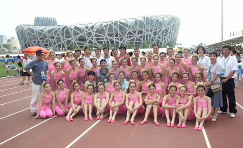 全体师生在鸟巢体育场合影留念