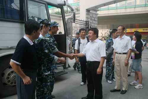 9月1日上午8时,我校2008级的480余名新生穿上崭新的迷彩服,背上行装,赴松江青少年活动营地进行为期9天的军训活动。一大早,院领导韩生及各院系领导来到新生中间,勉励同学们珍惜难得的军训机会,向部队学习,磨练自己、提高自己,上好进入上戏后的第一堂课,为今后的四年大学生活创造一个良好的开端!
