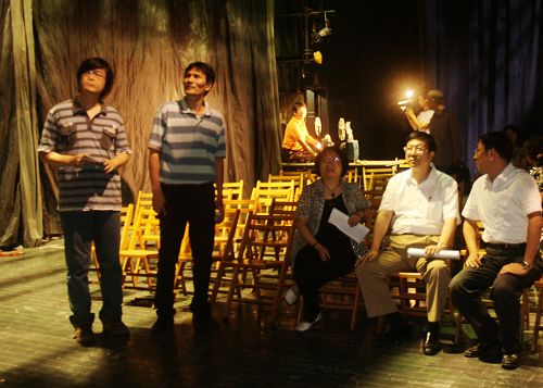 视察过程中,领导们首先在虚拟实验室听取了《岁月•1978》导演刘志新关于该剧的情况介绍;接着,又兴致勃勃地实地视察了该剧的排演布展现场;最后,领导们来到佛西楼会议室座谈,在对该剧表示充分肯定的基础上,对其进一步修改、加工和提高提出了许多重要的意见和建议。陈东副部长指出,希望通过这次演出,为纪念改革开放30周年活动做出有艺术特色的贡献。