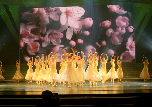 图为我校舞蹈学院表演舞蹈《春天的故事》