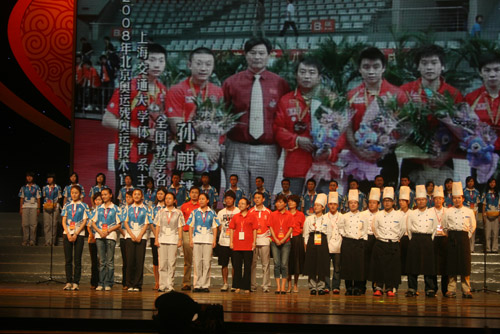 图为我校奥运志愿者上台表演