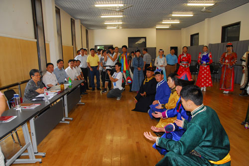 早上10点整,沈晓明副市长先观看了《岁月•1978》的部分演出,然后到课堂亲切探望了内蒙古少数民族表演班的老师和新同学,向辛勤工作在教学第一线的老师致敬,同时鼓励学生好好学习,争取早日成为文艺事业发展的栋梁。