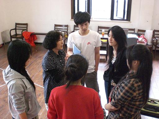 图为傅月美老师与演员交流