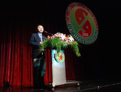 开幕式由中国剧协分党组书记、驻会副主席董伟主持,市委常委、市委宣传部部长王仲伟出席。教育部副部长陈小娅、上海市副市长沈晓明分别致辞和讲话,预祝这次校园戏剧节圆满成功。中国文联名誉主席周巍峙宣布首届中国校园戏剧节开幕。出席昨晚开幕式的领导还有:市政府副秘书长翁铁慧,市委宣传部副部长陈东,市文联党组书记、副主席杨益萍,副书记、副主席迟志刚,市科教党委副书记莫负春。昨晚,除了教育部和上海市有关领导,来自全国各地的学校代表、上海各大高校学生齐聚开幕式现场,共同观看了开幕式首场话剧《青春红肩章》的参演。我校领导楼巍、韩生、葛朗陪同观看演出。