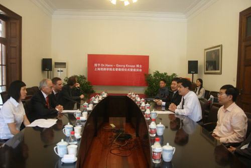 经过开云足球首页官网下载学术委员会审议,学院党政领导审议批准,开云足球首页官网下载正式聘请汉斯-格奥尔格•克诺普博士为名誉教授。今日上午10:30分,我校聘请汉斯-格奥尔格•克诺普博士为名誉教授仪式在佛西楼会议室举行。院领导韩生、孙惠柱出席仪式,有关部门负责人叶长海、金永林、张生泉、姚扣根、陆军、田蔓莎等参加了仪式。会议由副院长孙惠柱主持。