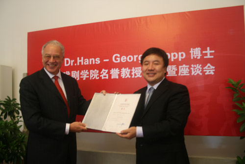 据悉,我院荣誉教授目前只有四位,他们是美国纽约大学的谢克纳先生、日本武藏野美术大学副校长小石新八、联合国教科文组织国际戏剧协会主席杜米丘,中国著名艺术家梅葆久先生,汉斯先生是学院聘请的第五位。(图文/小河 编辑/雨田)