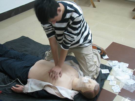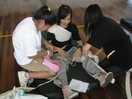 本次大学生急救比赛是历届参赛队伍最多的一次,共有40多支队伍参加,分为学生组和教工组两部分。每个参赛学校都选出了最优秀的队员参加本次比赛,赛场上,各支队伍激烈竞争,大家争分夺秒,发令员哨令一响,所有的急救员都跑向自己的伤员,根据自己平常学习的知识,针对受伤部位,对患者进行初级急救,我校由郭凌霞同学担任伤员,诸翠华等同学担任救助员,李宗禹、王少伟同学担任担架员,王淼同学参加心肺复苏比赛。赛前,大家互相鼓励缓解紧张情绪,比赛中,大家配合紧凑,利用三角巾,毛巾,橡皮止血带等现有材料,紧张有序地对伤员进行包扎,最后,在较短的时间内,我校同学完成了对伤员的初级急救任务,获得优胜奖。