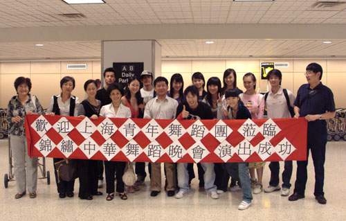 上海青年舞蹈团在机场受到欢迎
