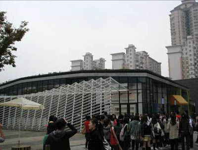 当然,最考验“功力”的是因地制宜营造艺术氛围。参观过程中,同学们尽情欣赏了雕塑中心A、B展区营造了的独特三度空间――长长的坡道直通5米高的“空中展厅”;原先的钢铁冷却池则改造成了别具一格的地下展厅,加上地面展厅交相融浑。就连原车间的排污沟,都未填埋,被改建成水草悠悠、鱼儿嬉闹的餐桌一景……据介绍,上海城雕艺术中心总展示面积将达2万平方米。所有展区均免费开放。最早建成的A、B象形字展示区,建筑面积为5000多平方米。不仅如此,与之交相辉映的是原上钢十厂酸洗车间所在地,与雕塑艺术中心合为一体的“红坊”艺术空间。