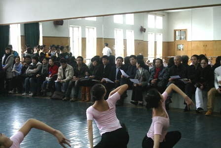 我院主持工作的韩生副院长、孙惠柱副院长,以及参加展演活动的部分工作人员,于24日中午赴莲花路舞蹈学院,在排练厅实地观摩了舞蹈学院准备的四个剧目。我院舞蹈学院在很短的时间里,克服各种困难,排练的四个剧目已经具有一定水准,给了院领导和同志们一定的信心。而由包括舞蹈学院四个剧目在内的三台演出,将构成我院本届展演的参演剧目。同时,由中国戏曲学院选派的2台剧目、北京舞蹈学院选派的4个剧目将在为期三天的时间里轮番演出,不仅将三校近年来艺术硕士培养的精粹节目囊括其中,更期望展示出目前我国艺术硕士在该领域培养的最高水准。