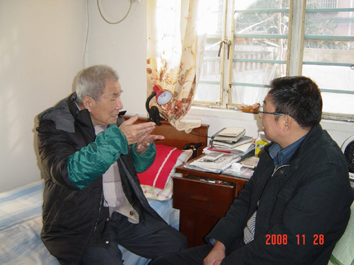 楼巍同志首先代表学校向他们表示亲切慰问,同时又希望他们保重身体,对学校的工作多给予关心和指导。丁瑛、胡志宏、江俊峰、胡导四位老同志分别对楼巍同志受市委委派到我校工作表示欢迎,对他当选为新一届党委书记表示祝贺。丁瑛同志对陪同的刘海庆同志说:“楼巍同志新来学校工作,大家要支持和配合他工作。” 胡志宏同志也表达了同样的意见并说:“希望新领导班子在决策前多搞点调研,多听听群众意见和建议。”江俊峰同志向楼巍同志简要地介绍了学校的历史和艺术教育的一些特点;胡导老师虽然在病中,可心里还惦记学校的事业,他向楼巍同志发表了他对表导演教学可持续发展的意见和看法。