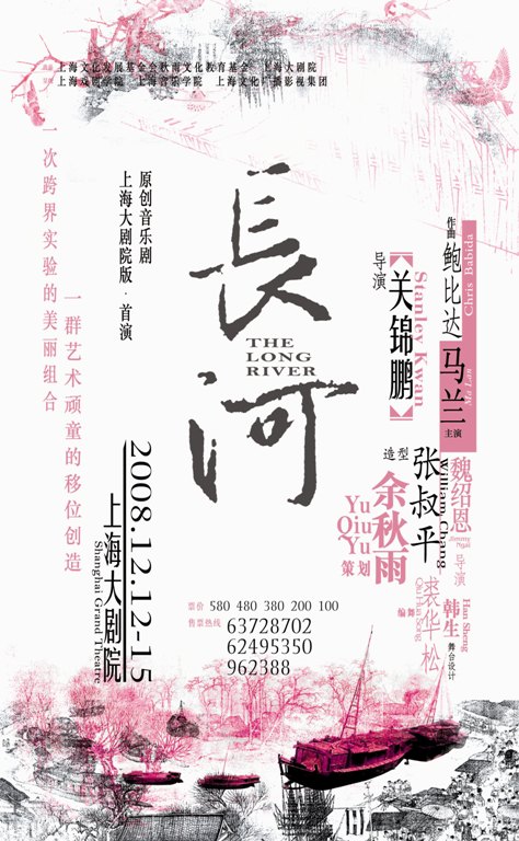 原创音乐剧《长河》上海大剧院版将于12月12日在上海大剧院首演。从10月25日起在大剧院所属售票网点开始售票。售票热线63728702,咨询电话62495350。(供稿/余秋雨大师工作室 编辑/雨田)