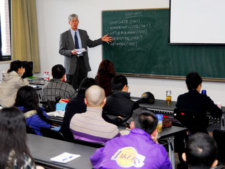 12月9日下午,红楼202教室溢满了我校同学们的热情,来自韦伯州立大学的Gregorys.Lewis(葛瑞格刘易斯)教授,展开了一场题为《中美电影比较》的精彩讲座。