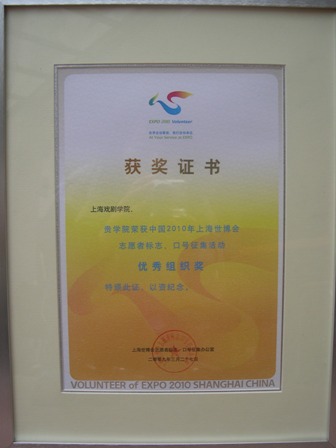 3月27日下午,鉴于我校在世博会志愿者标志、口号征集活动中的优异表现,上海世博会志愿者标志、口号征集办公室授予我院“中国2010年上海世博会志愿者标志、口号征集活动优秀组织奖”。据悉此项优秀组织奖全国仅有10家获奖单位。(图文/:团 委 编辑/雨田)