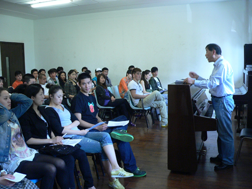 昨天(4月18日)下午,我校华山路校区红楼102教室传出了嘹亮的歌声。《毕业歌》、《义勇军进行曲》、《共青团之歌》、《歌唱祖国》等一首首耳熟能详的歌曲从表演系08级话剧本科班和08级内蒙本科班的50名同学的激情演绎中迸发。党委宣传部部长、表演系书记张生泉出席歌会的准备会并向大家作了动员。表演系声乐老师王复良进行了排练指导,宣传部王怿老师和08级班主任吕岩等有关教师也出席动员会。