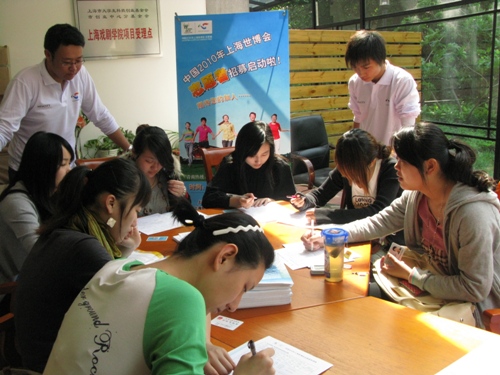 上戏团委作为中国2010年上海世博会志愿者工作站,于上午九点迎来了第一批前来报名的同学,戏文系、舞美系、表演系、导演系、创意学院等院系的同学很早就等候在报名点外,电视艺术学院等院系的同学,也专程从莲花路校区赶来报名。工作人员为踊跃参与志愿者报名的同学们详细解答了相关政策、注意事项等,并发放世博知识读本、志愿者阅读资料和世博志愿者徽章,为这些未来的世博志愿者做好工作准备。