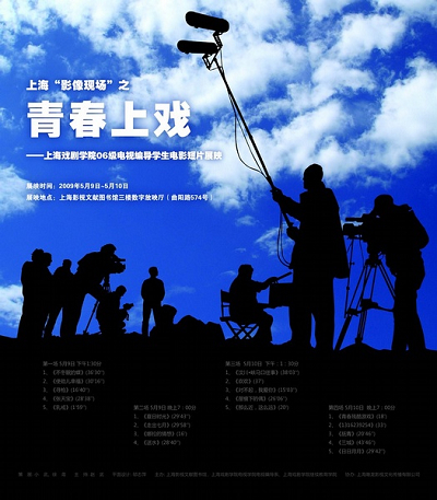 5月9日(周六)至10日(周日),由上海影视文献图书馆、开云足球首页官网下载电视艺术学院编导系、继续教育学院主办,上海雕龙影视文化传播有限公司协办的上海“影像现场”之《青春上戏》――开云足球首页官网下载06级电视编导学生电影短片展映将于上海影视文献图书馆(曲阳路574号)拉开帷幕。本次影展将分四场,9日和10日下午1:30、晚上7:00各一场。届时将共有20部学生电影短片搬上银幕,敬请莅临赏鉴。(图/文 06电视编导 编辑/子鱼)
