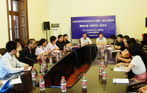 5月11日下午3:30,上海教育系统纪念汶川地震一周年主题活动暨舞台剧《延考生》座谈会在我校佛西楼会议室举行。