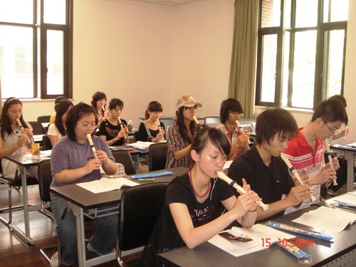 5月16日上午10点,我校志愿者二十余人在红楼208教室参加了“人人吹笛、全民迎博,同促和谐、共办盛会”的万人吹笛迎世博培训活动,由著名笛子表演艺术家许国屏先生为同学们现场授课。