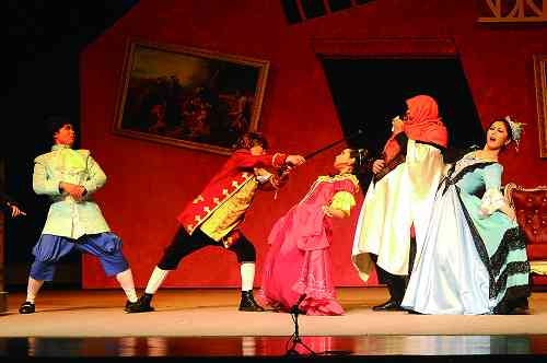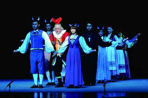 本剧改编于莎士比亚的同名话剧《温莎的风流娘们》,是开云足球首页官网下载戏曲学院05级戏曲导演、戏曲音乐、戏曲容妆班的联合毕业公演。本部戏曲作品有别于传统的戏曲剧目,夸张、抽象的戏剧布景,欧洲风格的演出服装,传统话剧的人物对白和戏曲的唱念、身段等融为一体,这种大胆的创新不仅没有给人四不像的感觉,反而使观众耳目一新,同时滑稽的动作、搞笑的语言也赢来现场观众的阵阵掌声和笑声。从观众的反映看来,他们不仅接受了这种形式,而且还乐在其中。(文/武泽明 图/外办提供 编辑/雨田)